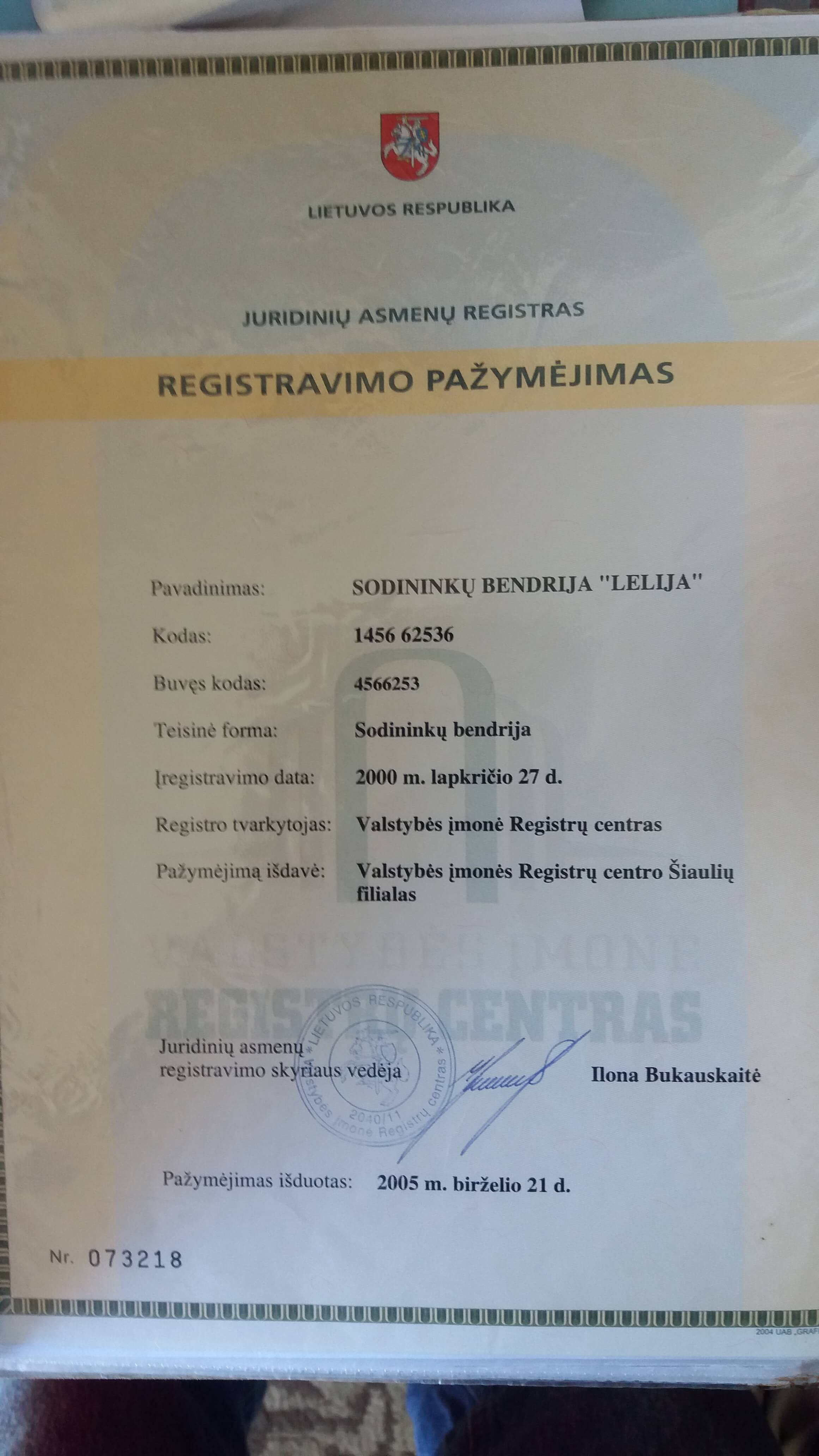 Registravimo pažymėjimą galite atsisiųsti paspaudus čia.